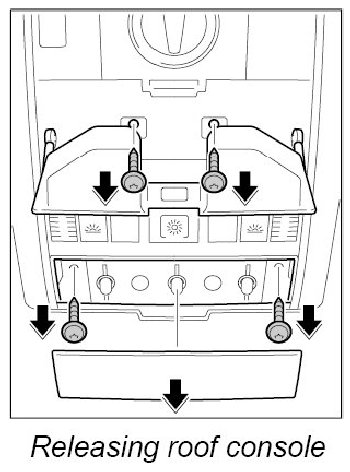 4. Detach roof console around sliding roof switch on roof liner and allow it to hang down to the front.