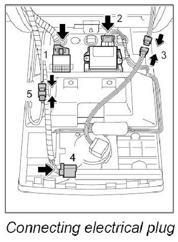 2. Connect the electrical plug -arrow 4- until it clicks audibly into place.