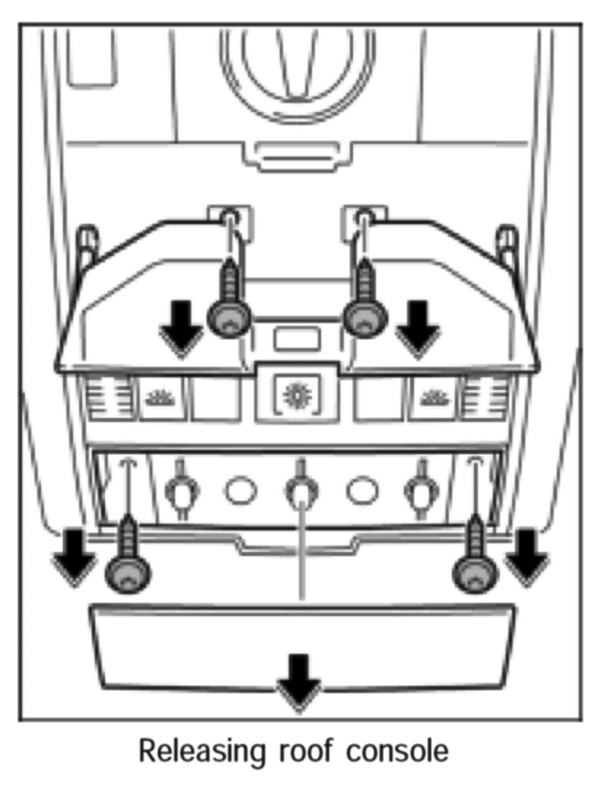 4. Detach roof console around sliding roof switch on roof liner and allow it to hang down to the front.
