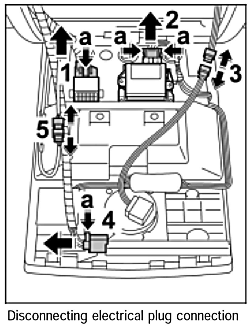 5. Press electrical plug -4- on the compartment sensor -arrow a-and unplug.