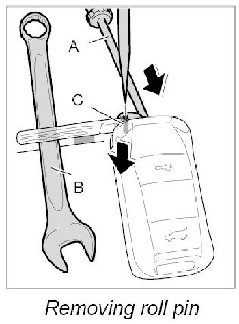 3. Drive out the roll pin -C- - spring steel (max. diameter 1.5 mm) - with a tool such as a mandrel.
