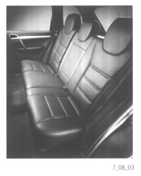 Folding down the rear seat bench completely provides maximum cargo space with a flat floor. The head supports must be removed from the backrest, and the seat cushions must be folded upright. The head supports are then placed into the receptacles provided in the seat cushions and the backrest is folded forward. The backrest uses a rotary safety latch to provide solid and secure positioning. This ensures proper locking of the seatback and displays a visual verification when the catch is engaged.