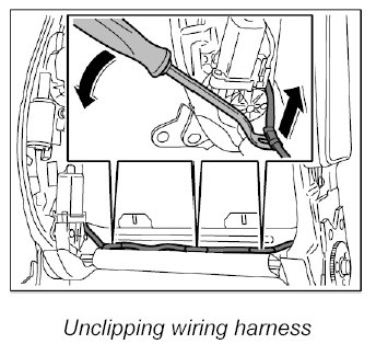 3. Unclip wiring harness using a disassembly tool, universal NR.21 -Arrows-.