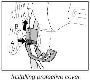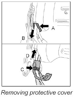 4. Push inner edge of protective cover inwards -Arrow A- and pull protective cover down and out -Arrow B-.