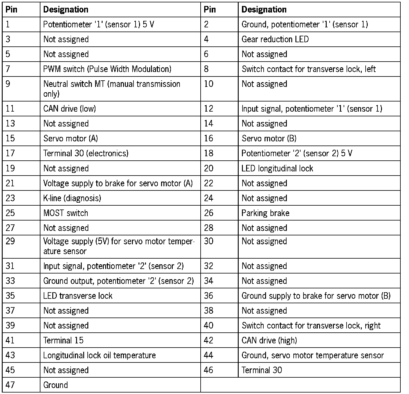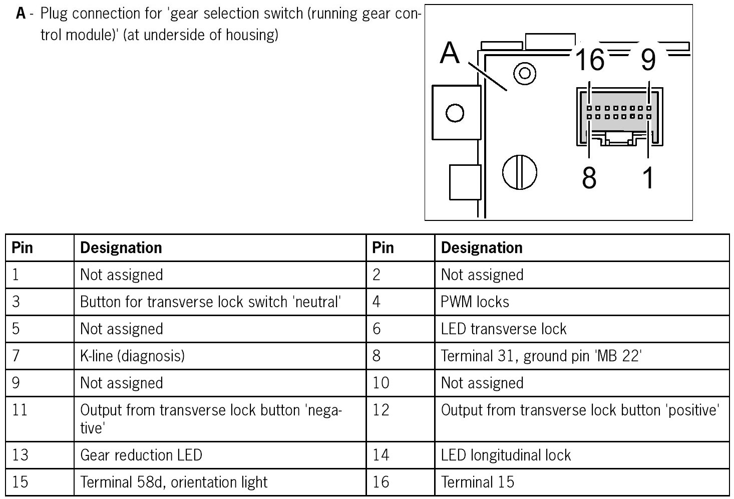 Gear selection switch connector assignment (running gear control module), '16-pin'