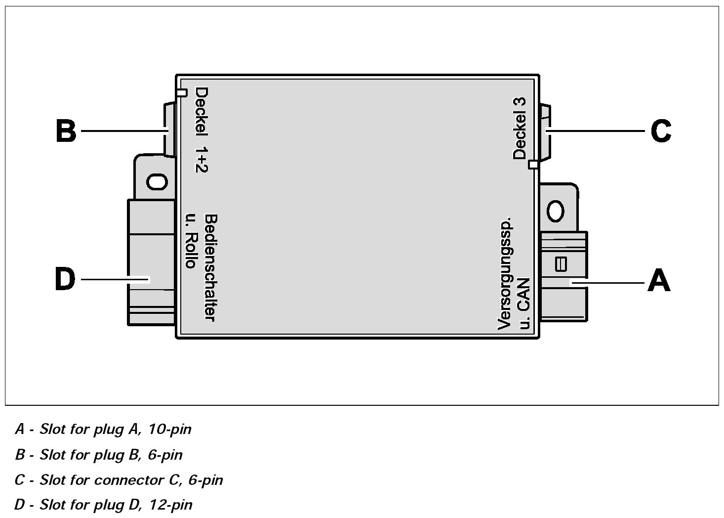 Plug A, wiring harness for Panorama roof system control unit (supply voltage and CAN)