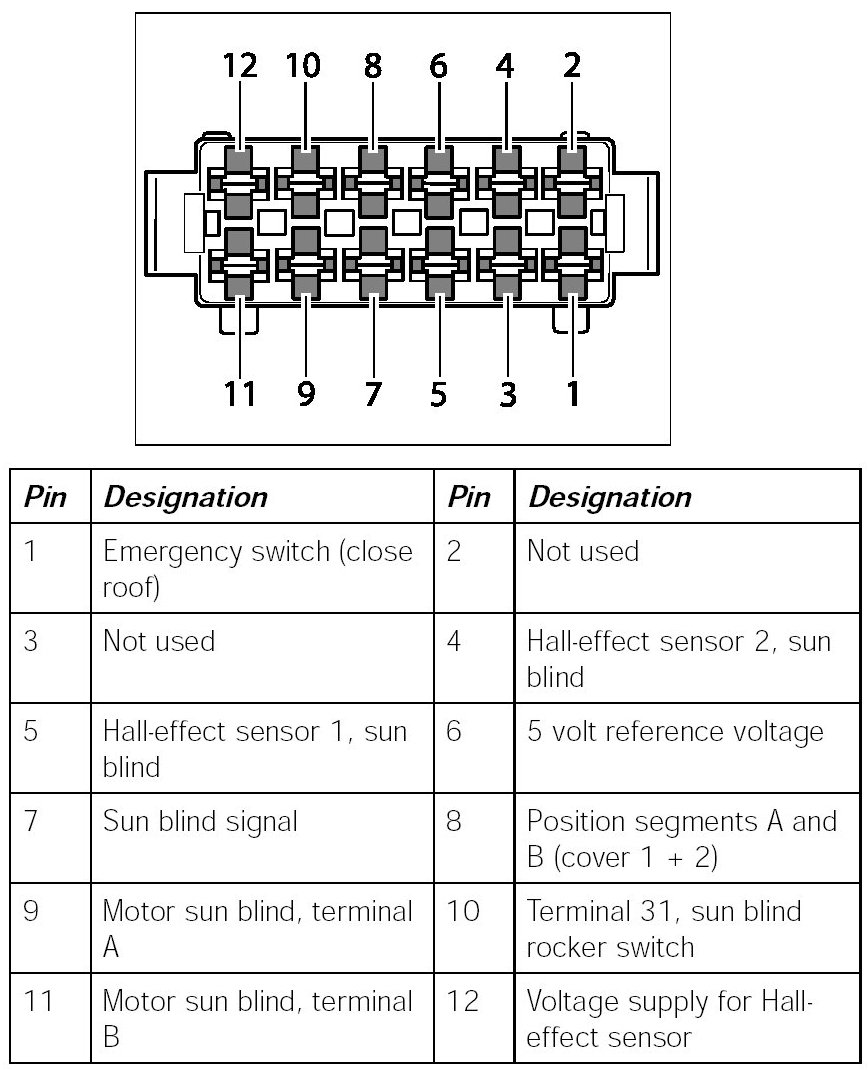 Plug B, Panorama roof system control unit wiring harness for motor adjustment, roof segments A and B (cover 1 and 2)