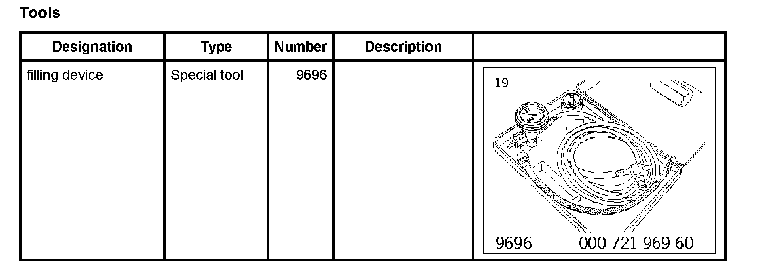 The radiator cleaning agent mixture must be approx. 23 liters in the filling canister of the filling device filling device 9696.