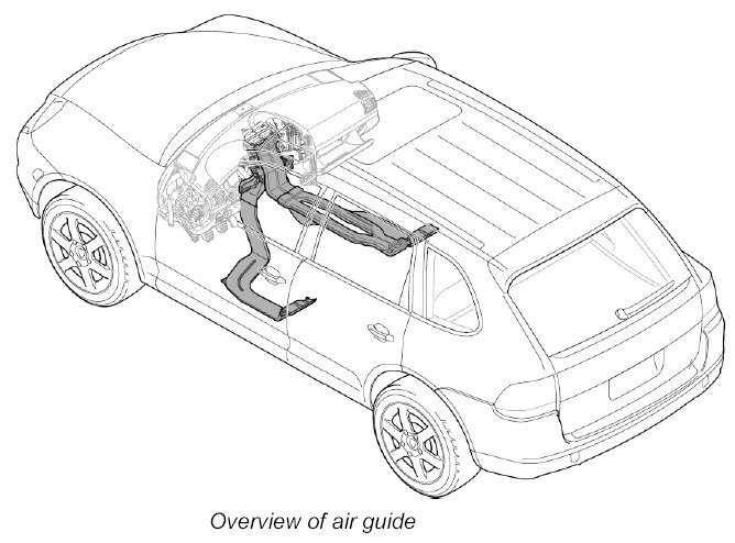 - Depending on vehicle equipment and on the required air guide, all interior components must be removed.