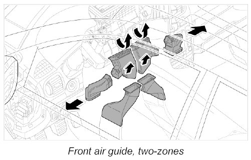 - The air guide auxiliary guide (rear four-zones) can be found under Removing and installing auxiliary air conditioning air guide.