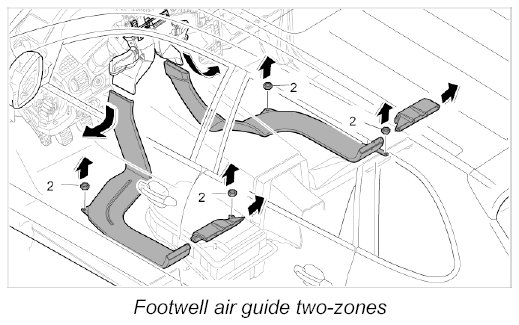 Removing footwell air guide two-zones