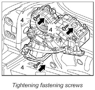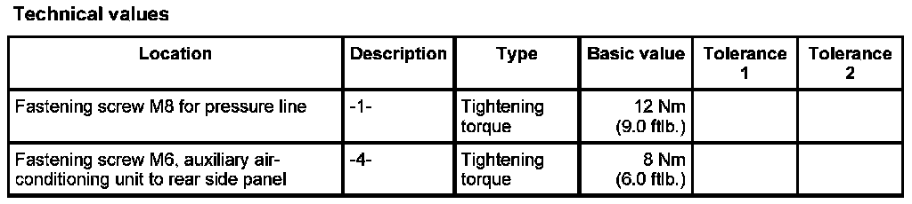 6. Press the auxiliary air-conditioning unit on the side wall and screw down the three fastening screws -4-. - Tightening torque: 8 Nm (6.0 ftlb.)