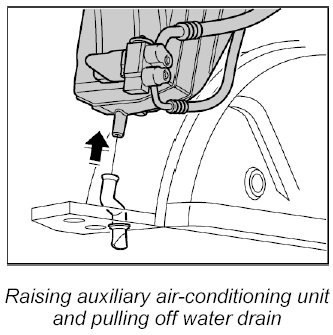 10. Raise auxiliary air-conditioning unit and pull off water drain.