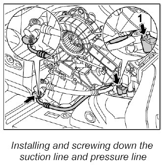 3. Remove the plugs on the suction line and pressure line, check the O-rings of the refrigerant lines, and replace if in doubt.