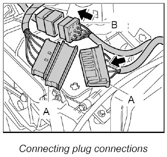7. Push on the electrical plug -A- and -B- until plug is felt to engage.