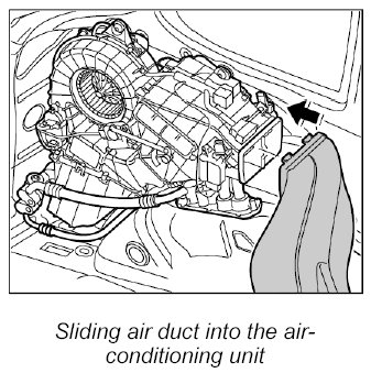 8. Push the air duct into the auxiliary air-conditioning unit until the air duct engages.
