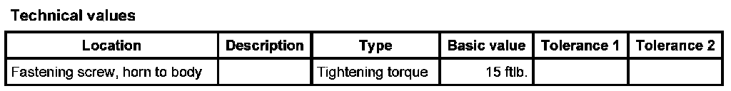 1. Connect the electrical plug, position the horn and secure with the fastening screw. - Tightening torque: 15 ftlb.