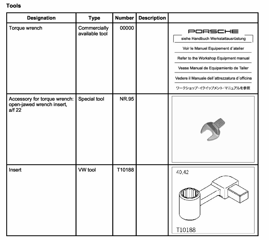 A- (s) at the front tie rod(s) to the specified tightening torque. Can also be used for loosening.