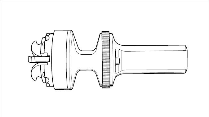 Modified quick-clamping holders -figure- (for fastening the measured-value pickups on the wheels) are used for the Cayenne. These measured-value pickups are positioned (with the claws first) centrally in the center of the rim and tightened clockwise in the rim with the straining ring.