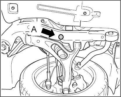 The measurement is made from the wheel contact area to the bottom edge of the side member of the suspension subframe -A- (in front of drain bore at connection point of control arm to suspension subframe).