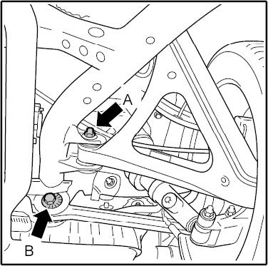 - After loosening fastening nut, turn camber eccentric adjuster -A- as required.