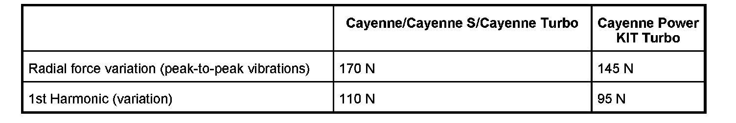 A new tire must be fitted if the radial force variation cannot be reduced to the values listed in the table.