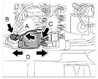 12. Press relay carrier in -Arrow A- until locking tabs -B- are felt to engage.