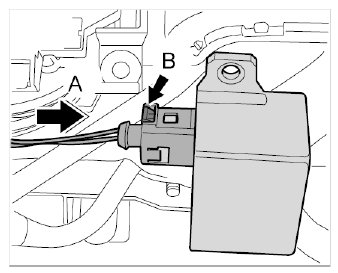 13. Insert fuse carrier -Arrow A- until locking tabs -B- are felt to engage.