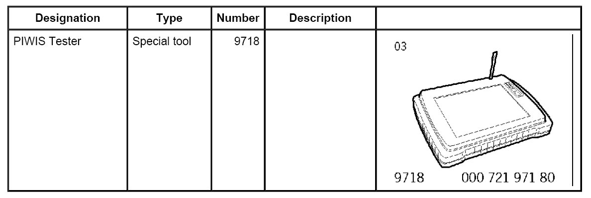 PIWIS Tester 9718 with test software version 21.000/04/2008 (or higher)
