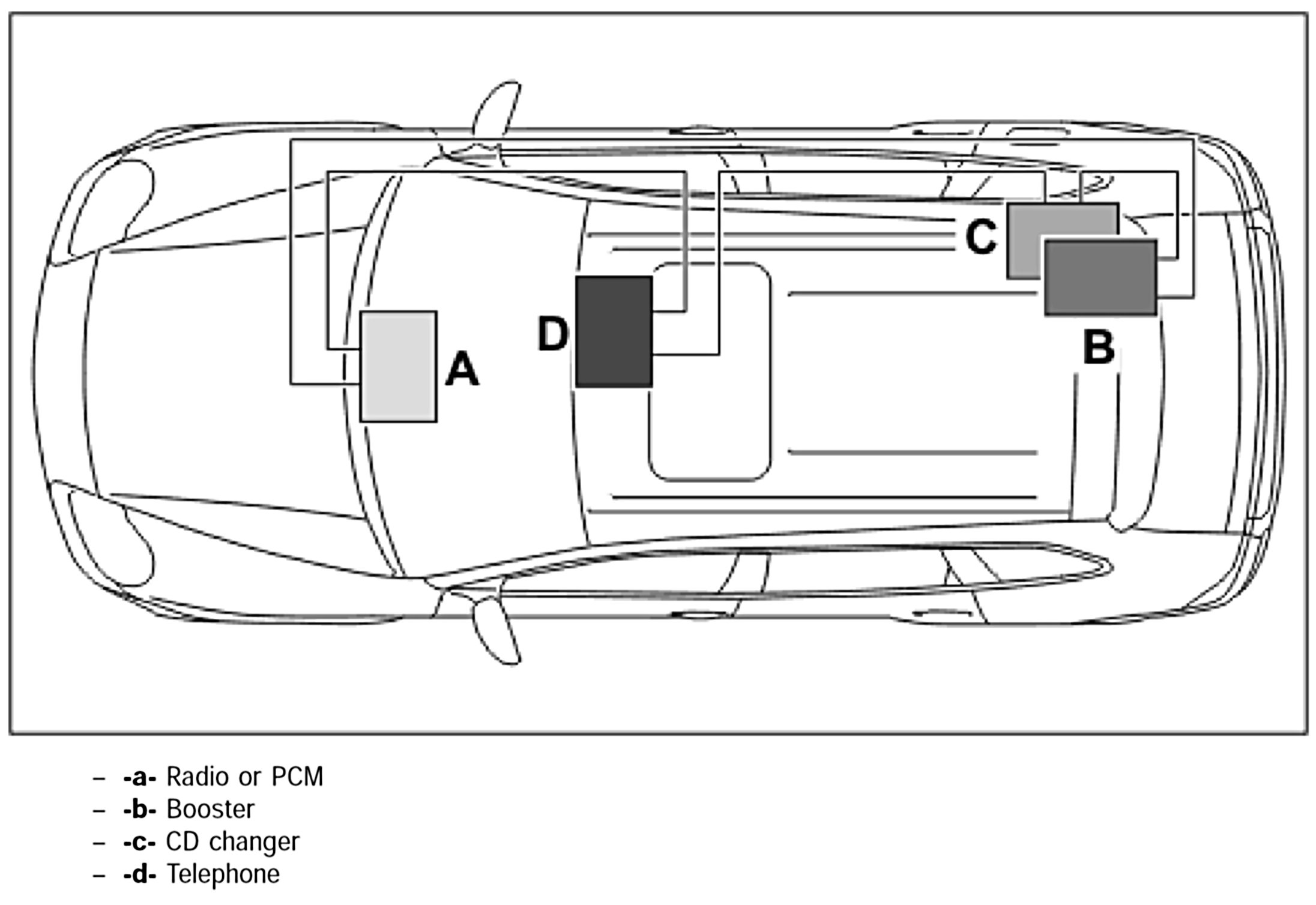 In all MOST control units, at least one sending diode and one receiver diode are installed. The sending diode of a MOST device is connected to a receiver diode of a 2nd MOST device. This results in a ring where the light signal is reinforced in each control unit (in each control unit, the light signal is transformed into an electrical signal).