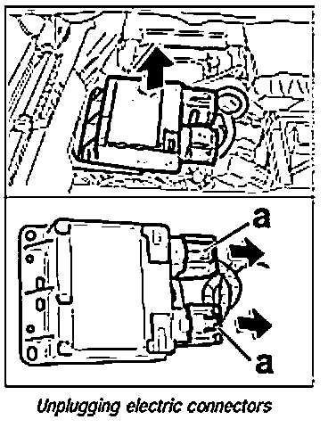 3. Remove AWS control unit from support, release the two electric connectors -a- and pull them off the control unit.