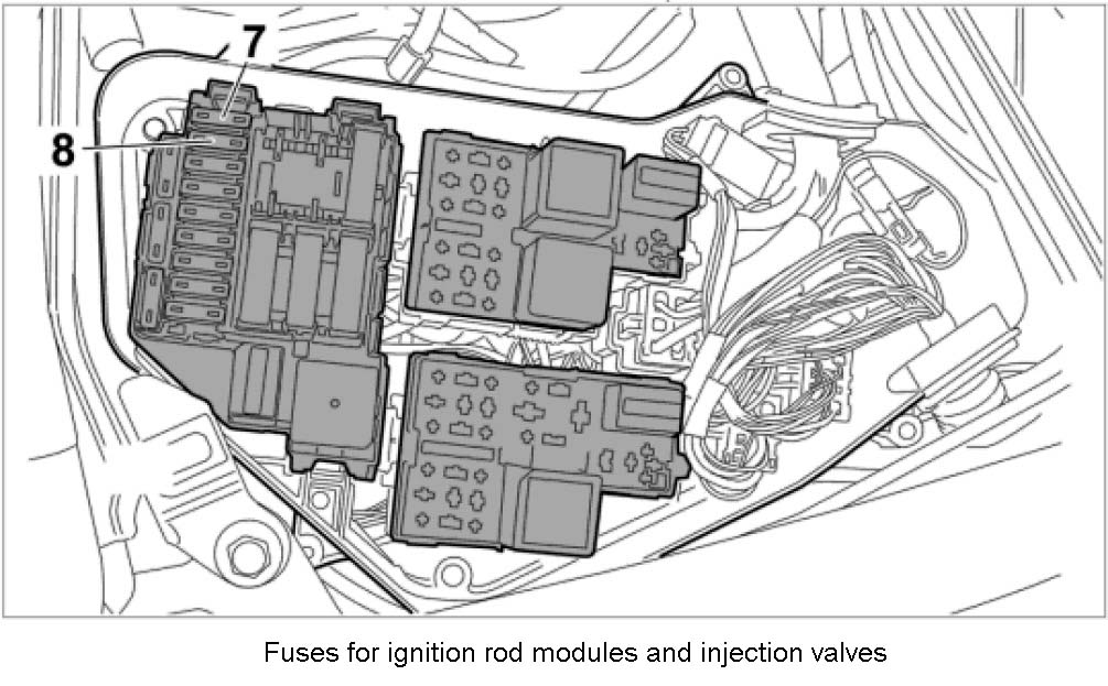 3. Remove fuses -7- for ignition rod modules -8- and injection system.