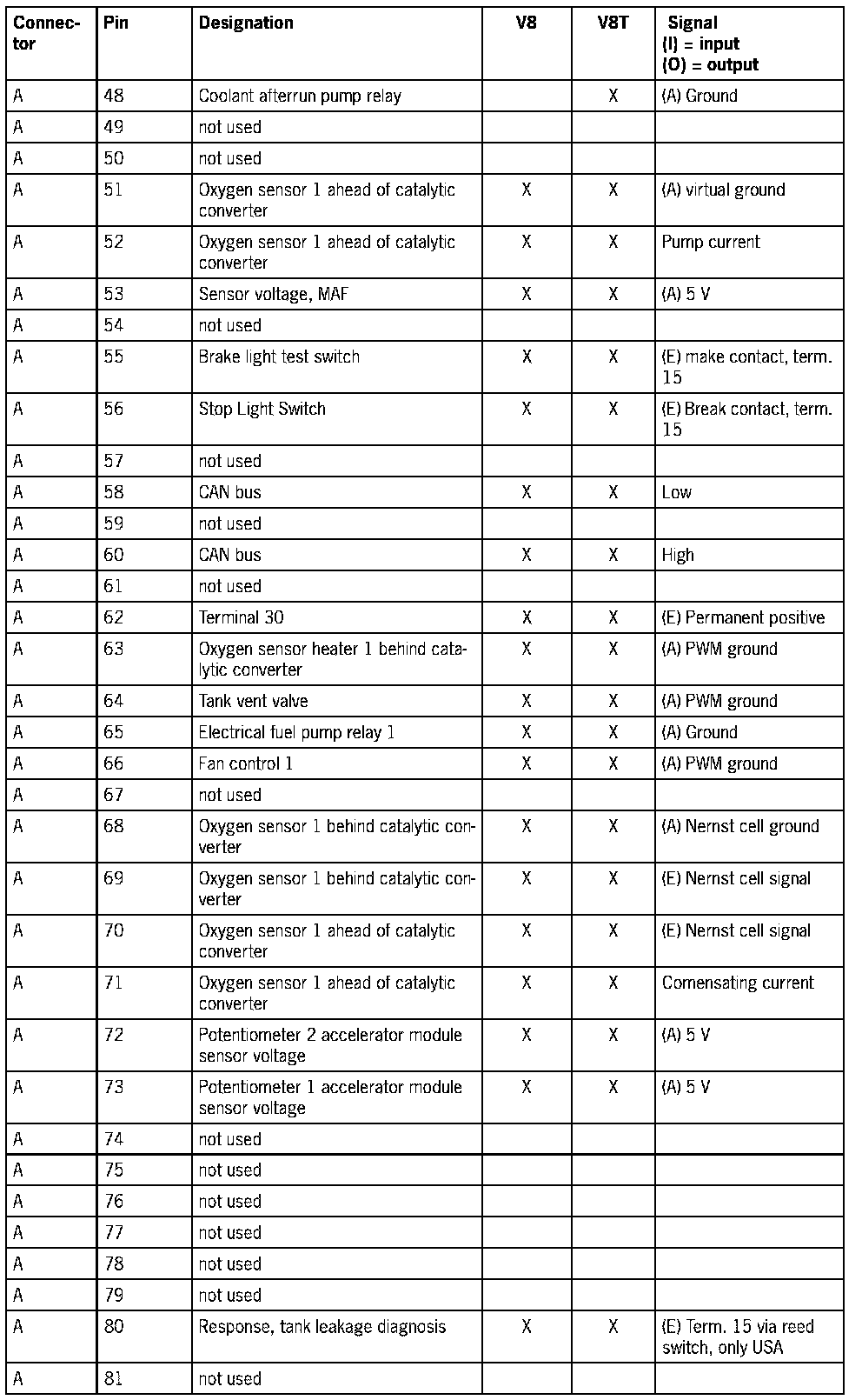 Cayenne V8 Connector A on control module DME 7.1.1 - 81-pole