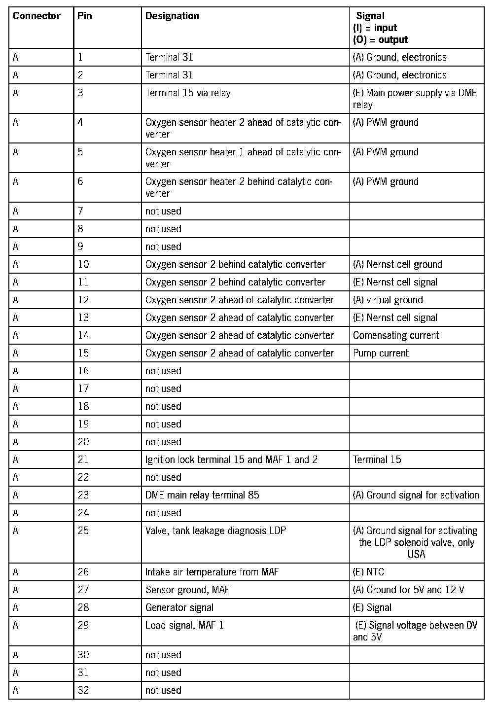 Connector Pin Assignment Of DME 7.1.1