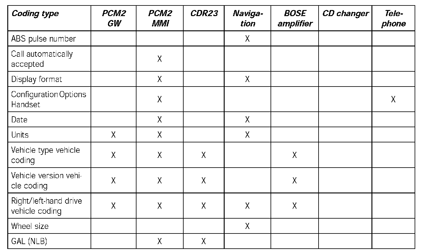 - When the PCM2 is replaced, the coding must be performed in accordance with the connected MOST control units.