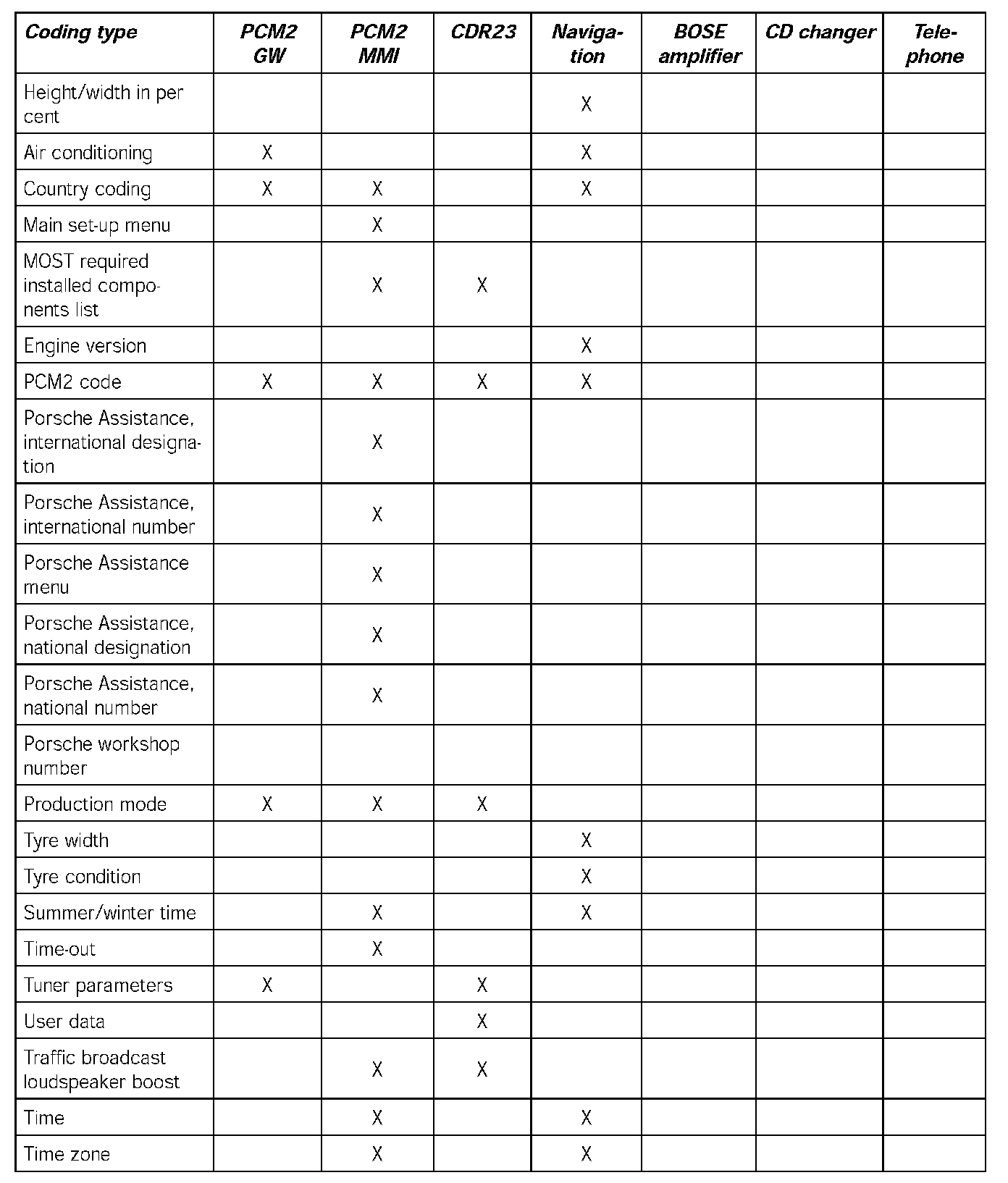 - When the PCM2 is replaced, the coding must be performed in accordance with the connected MOST control units.