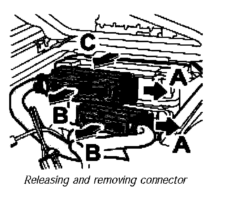6. Release the two connectors -A- and remove them -B-.