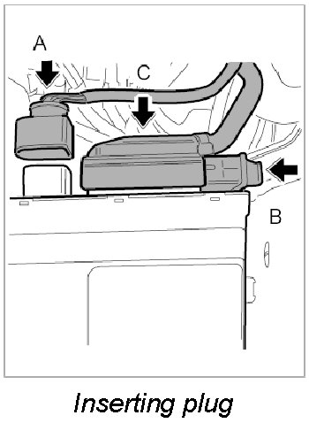 1. Push on plug -arrow C- and lock it -arrow B-.