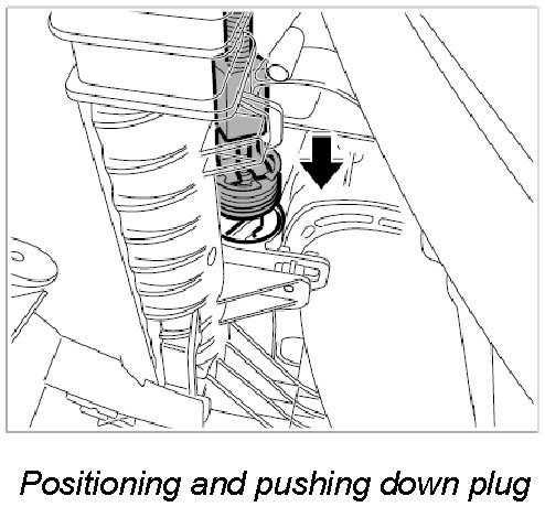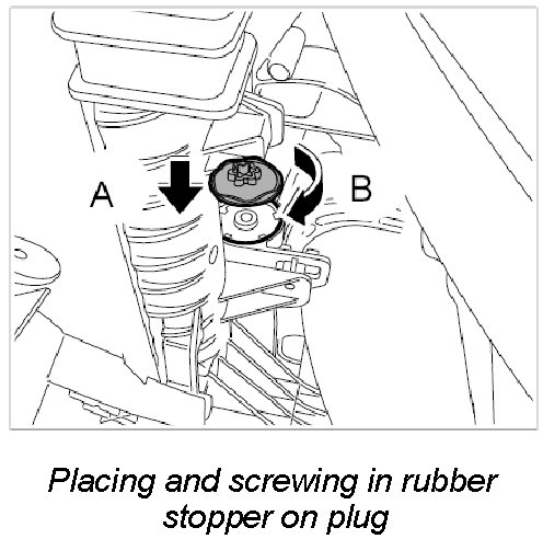 5. Place rubber stopper on plug -arrow A- and screw in -arrow B-.