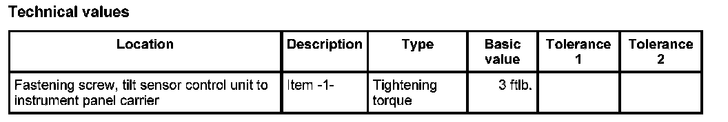 INFORMATION: The tilt sensor is integrated into the tilt control unit and cannot be separately replaced.
