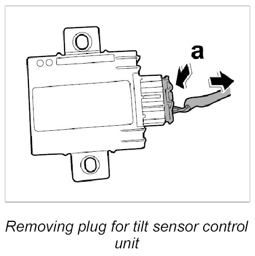 4. Unlock plug for tilt sensor control unit -Arrow a- and remove.