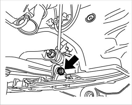 3. Loosen anti-roll-bar mount -arrows- and allow anti-roll bar to hang.