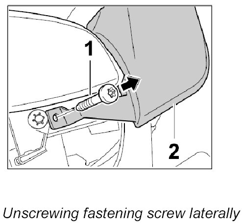 1. Unscrew fastening screw -1- laterally out of the cover -2-.