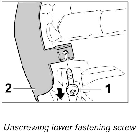 2. Unscrew lower fastening screw -1- out of the cover -2-.