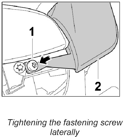 3. Screw down the cover -2- laterally with the fastening screw -1-. Tightening torque: 2.7 Nm (1.8 ftlb.)