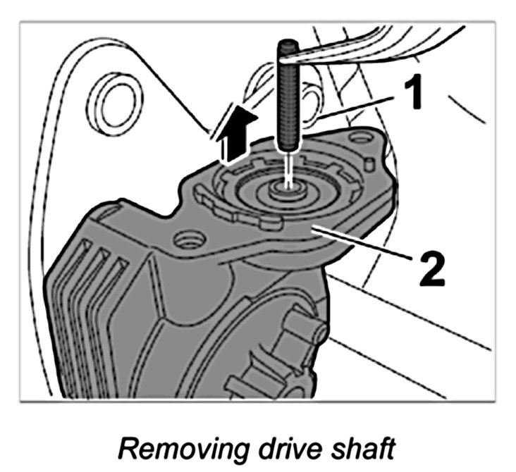 5. Pull drive shaft -1- out of the gear mount -2- and check for damage.