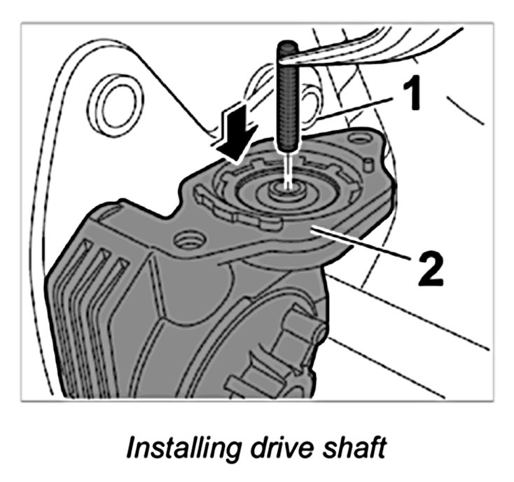 1. Insert the drive shaft -1- into the gear mount -2- by twisting slightly.