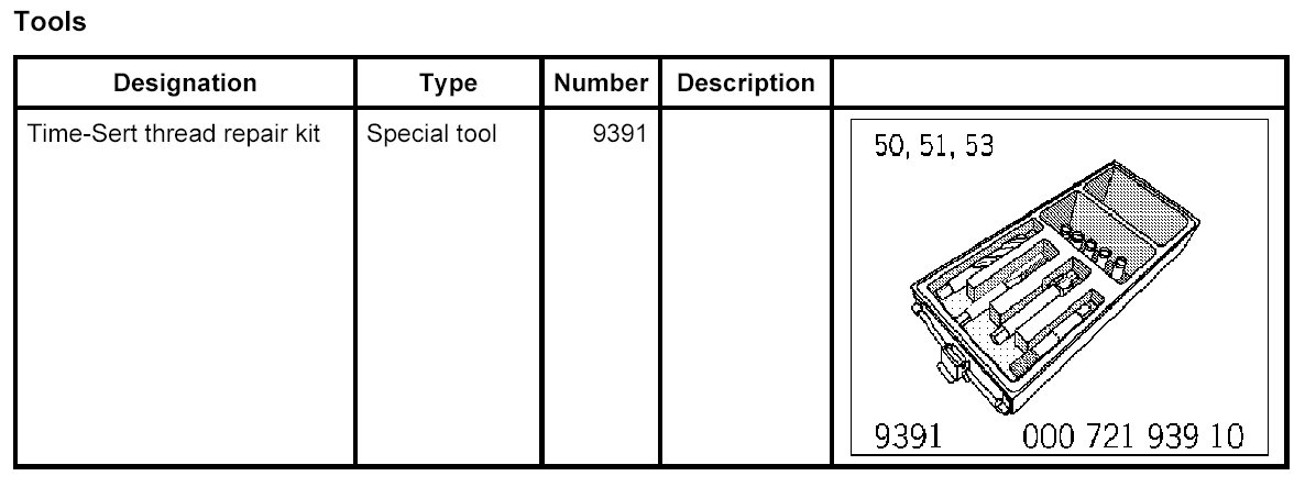 - Thread repairs can only be carried out using the Time-Sert thread repair system.