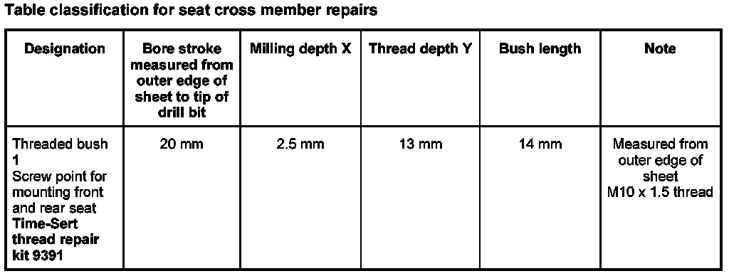 Installing repair threaded bush for seat cross member