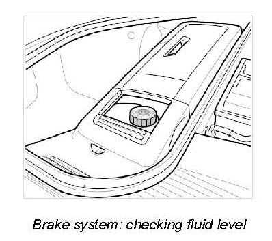7. Check brake fluid level and correct it if necessary. The brake fluid level must be between the MAX-MIN marking.
